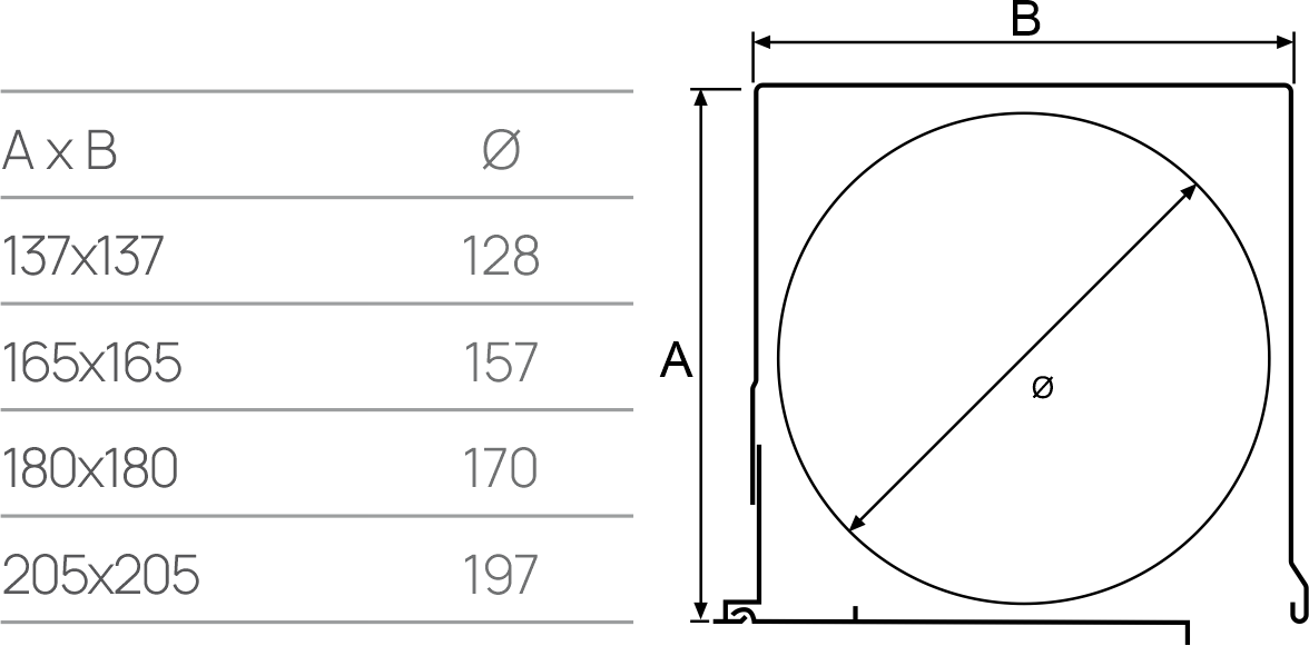 Στην περίπτωση του κουτιού Μοντέλο 90° με ενσωματωμένη σίτα, η εσωτερική διάμετρος (Φ) διαφέρει ανάλογα με το μέγεθος του κουτιού, σε σύγκριση με το κουτί Μοντέλο 90°.