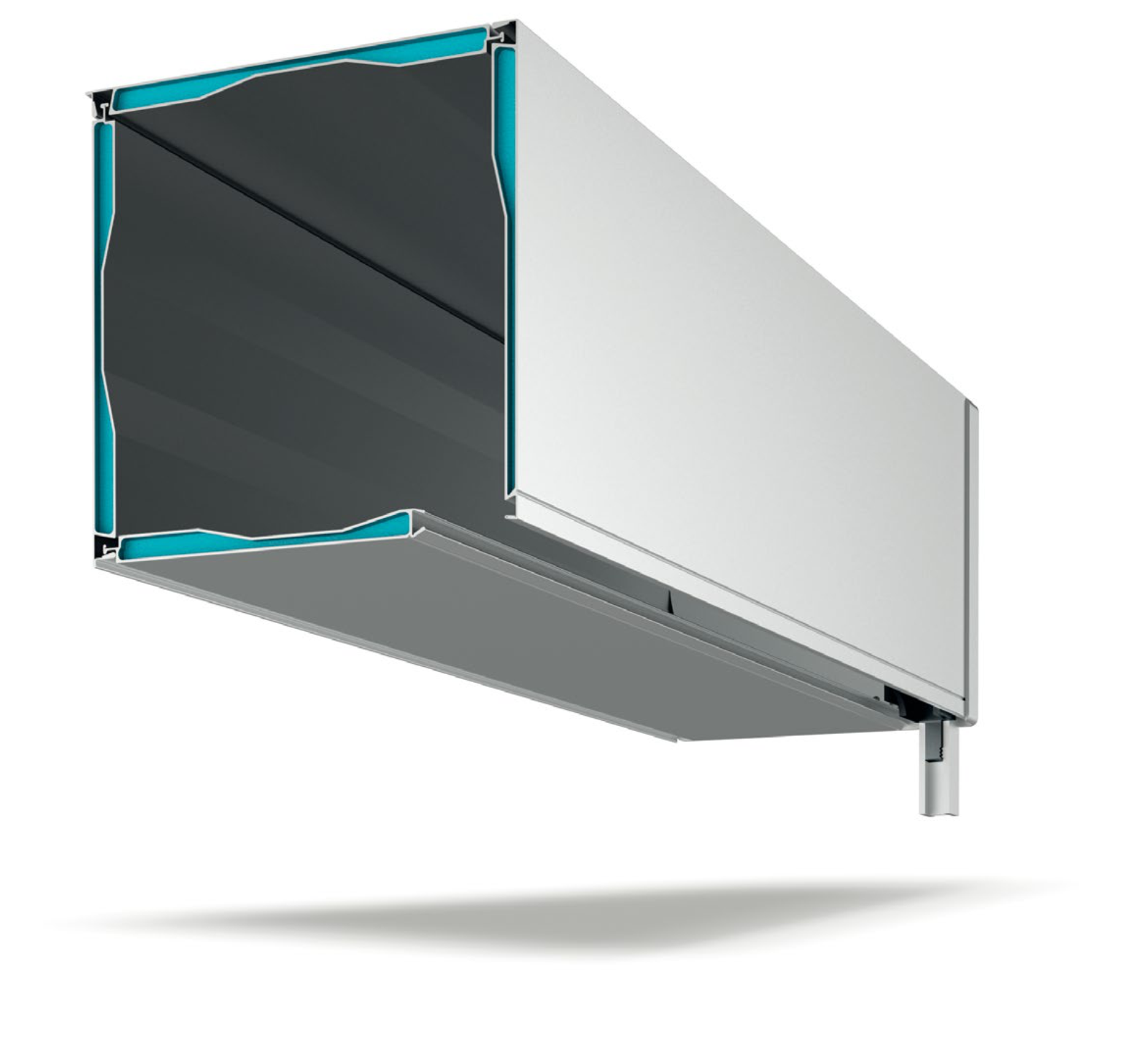 The thermal insulated box is integrated into the opening’s casing, which results in a compact and discreet view from the outside.