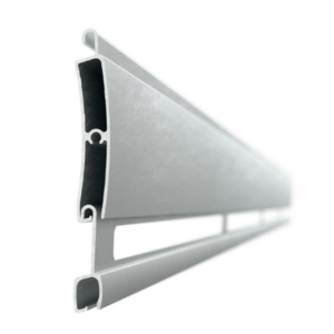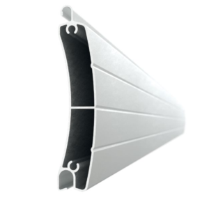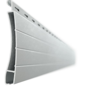 Extruded aluminium slat with maximum rigidity for garage doors.