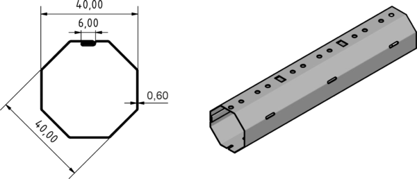 The new Φ40 axis is designed to meet every construction requirement, thanks to the three different perforation patterns it carries. In addition, Φ40 axis is available in two thicknesses, 0,5mm (21.03.0102) and 0,6mm (21.03.0101)