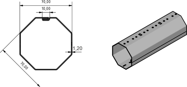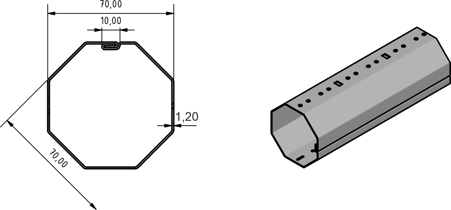 The new Φ70 galvnised axis is designed to meet every construction requirement, thanks to the two different perforation patterns it carries. In addition, Φ70 axis is available in two thicknesses, 1,0mm (21.03.0301) και 1,2mm (21.03.0302)